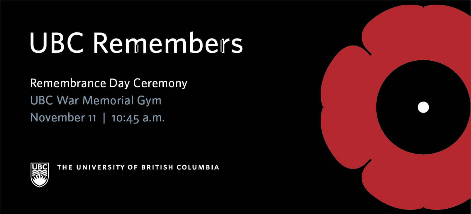 This year’s Annual Remembrance Day ceremony at UBC will be held on Monday, November 11, 2019 in the War Memorial Gym. The event is open to all and is an opportunity for all to honour and remember all those who served in times of war, military conflict and peace.