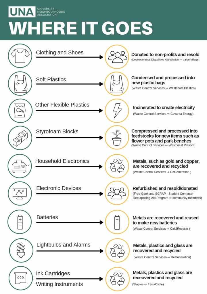 This graphic outlines where each item of these common items go after arriving at the Green Depot.