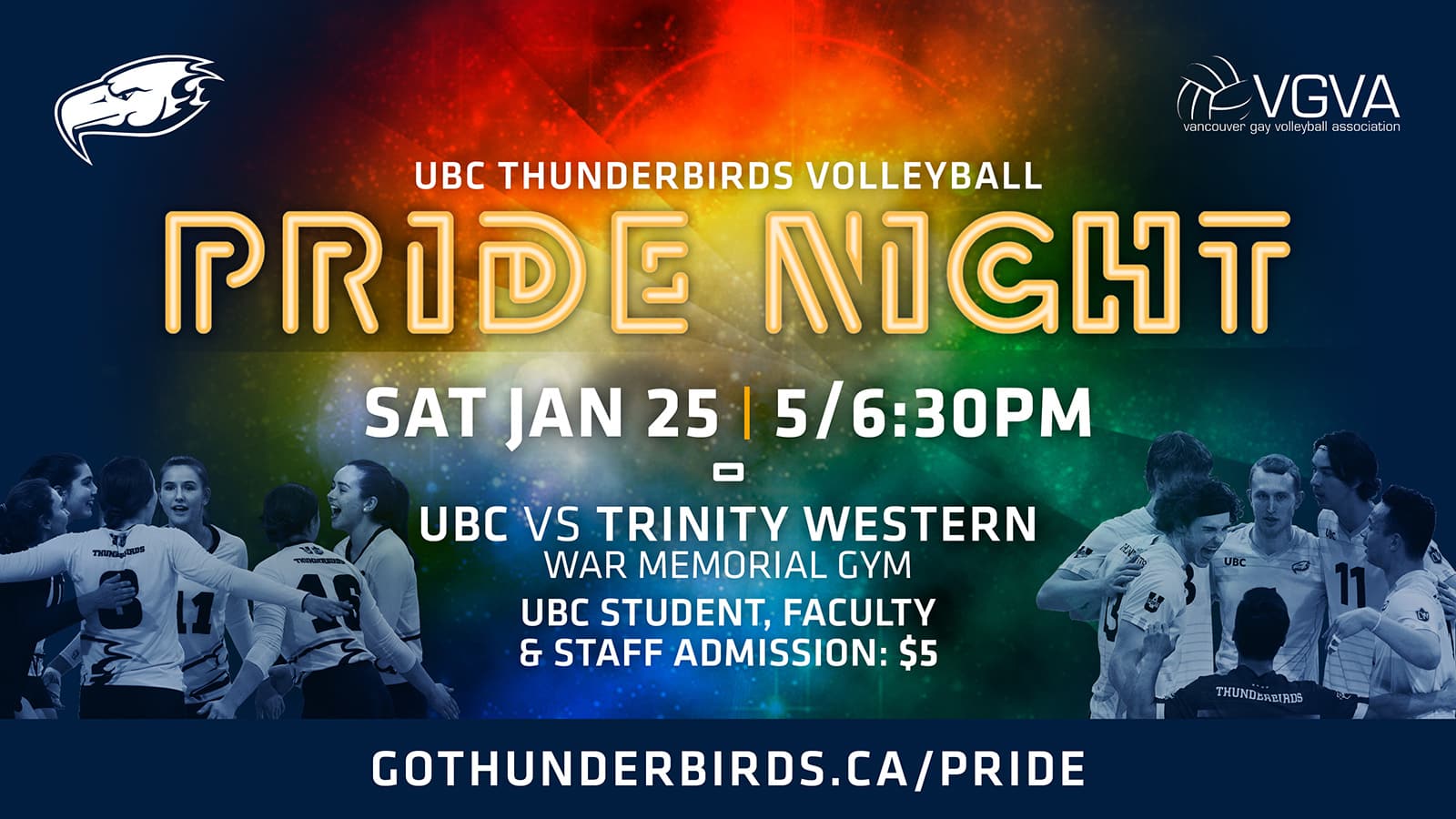 Pride Night is a great opportunity for us to celebrate the inclusive environment at UBC and to celebrate LGBTQ+ pride. For this annual event we are partnering again with the Vancouver Gay Volleyball Association.