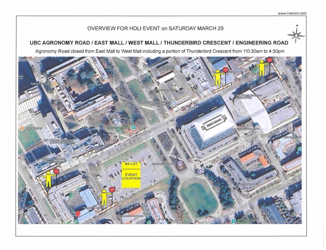 Agronomy Road – Engineering Lane to lane east of West Mall and Thunderbird Crescent @ Thunderbird (lane into Thunderbird Commons) from 10:30 am – 4:30 pm