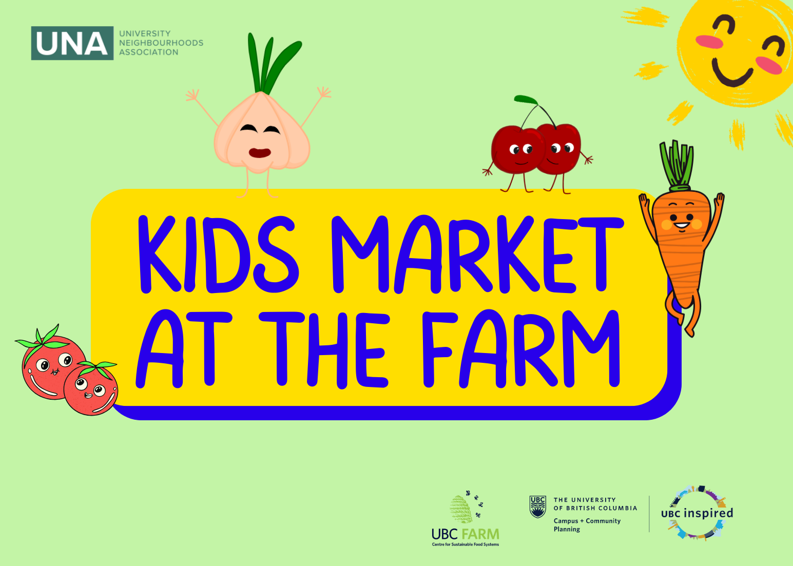 The UNA and UBC Inspired are excited to present the first-ever Kids Market at the UBC Farm on August 30. Come out and support young creators ages 6–18 from the community selling handcrafted goods at the UBC Farm's Saturday Farmers Market. Remember to bring cash!