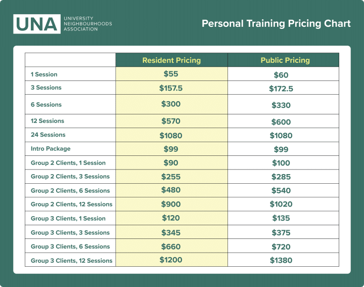 Personal training is up and running at the UNA. Our personal trainers will work with you to meet your goals, get you fit, and guide you through your health and wellness journey.