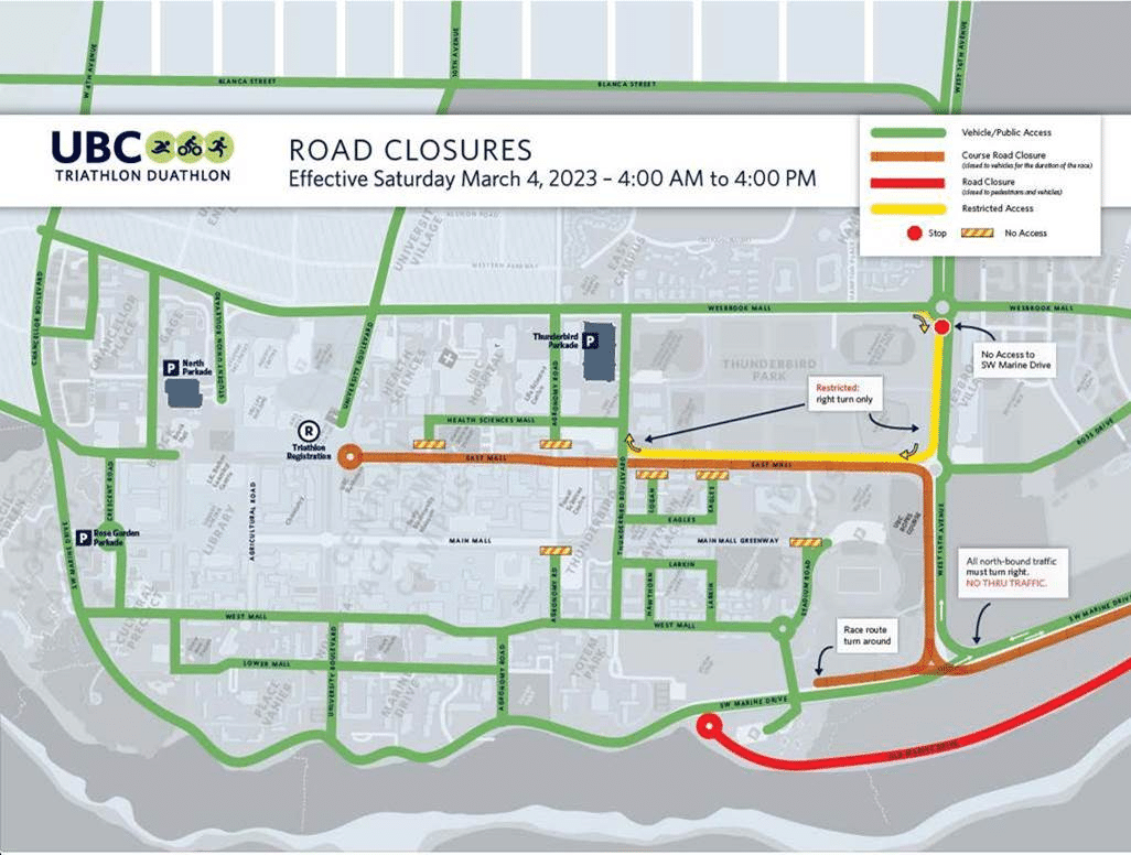The UBC Triathlon Duathlon will take place on Saturday, March 4, 2023 from 8 a.m. – 4 p.m.